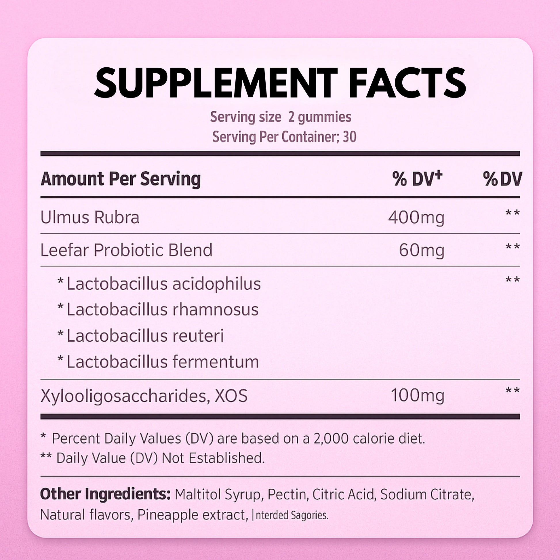 Take 2 gummies daily with or without food. For best results, use consistently for at least 4–8 weeks to allow the microbiome to rebalance and maintain improvement. Hydrate regularly and pair with daily wellness habits for optimal support.